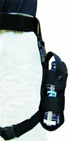 This Holster comes mounted on a genuine Blade-Tech Thigh Rig. LawPro MK9 Spray Holster with Flashlight Pouch LawPro MK-9 Corrections Spray Holster Combines the convenience of a duty rig with the speed and security of a drop leg holster.