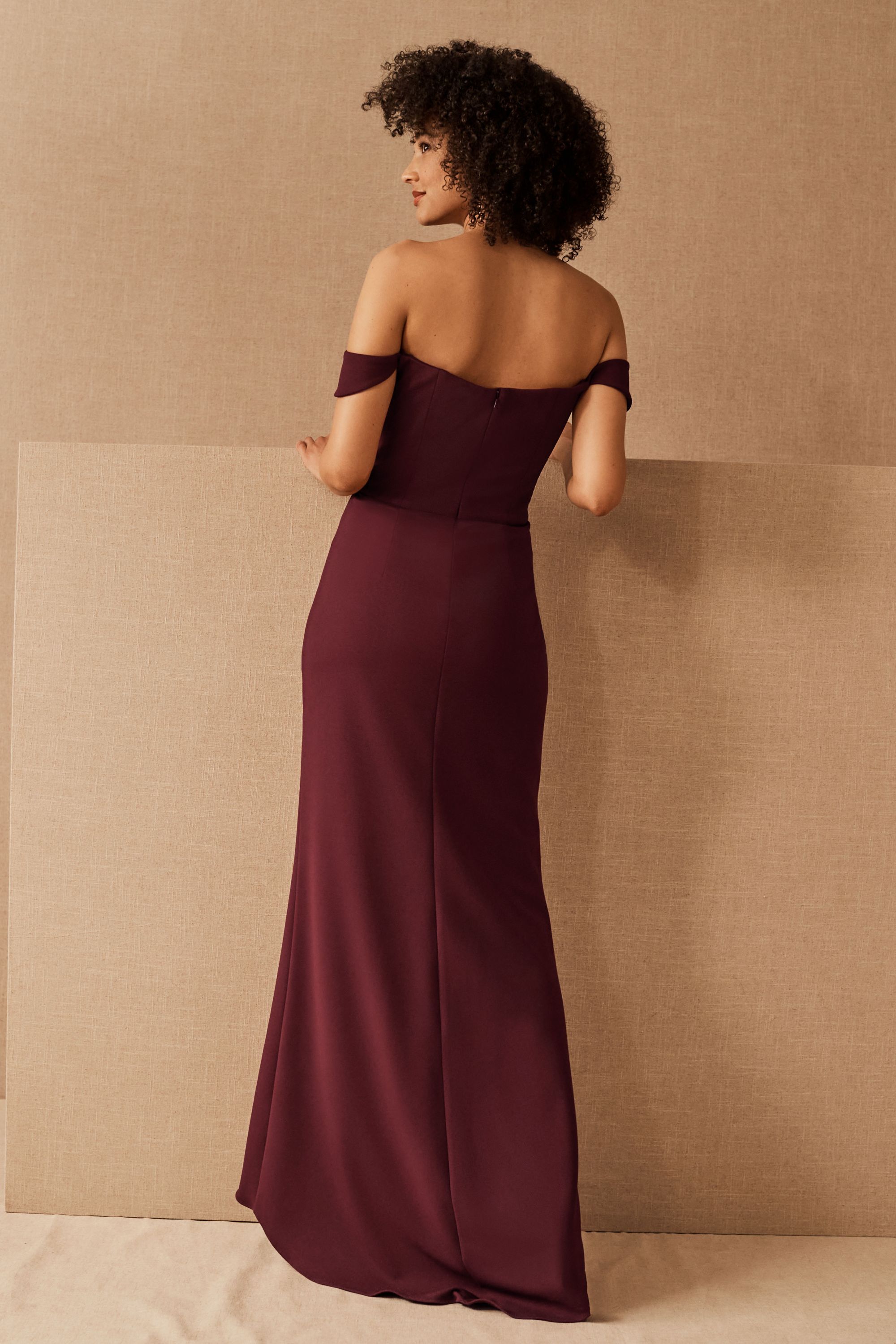 Rossi Crepe Maxi Dress. Sep 28 2021 - A sweetheart neckline and elegantly draped off-the-shoulder sleeves add a romantic flourish to this polished crepe maxi dressOnly available at BHLDN. Wine Size view size guide.