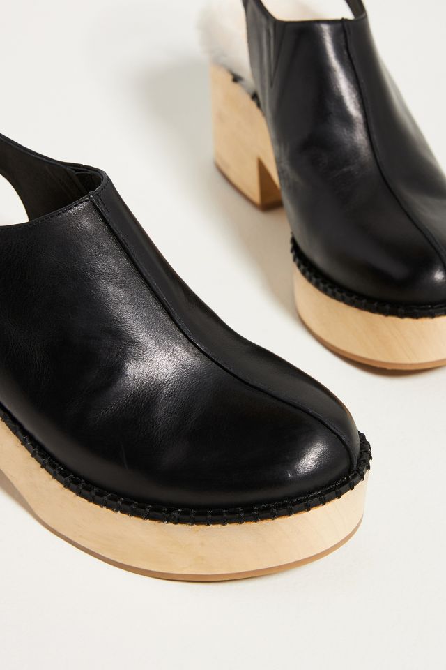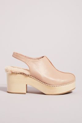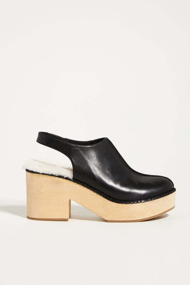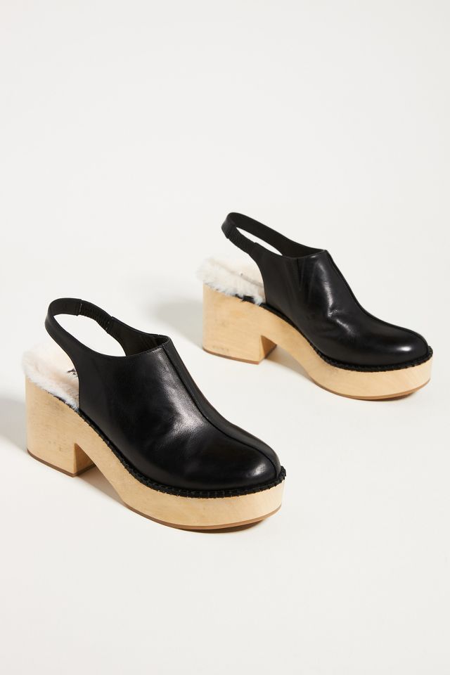 Click or call 800-927-7671. Wooden heel rubber sole slingback. Elevated by a retro-inspired wooden sole and finished with an oh-so-cozy sherpa lining these clogs are sure to be a favorite for cool-weather outfitting.